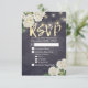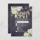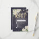 Modelos de Placa de Resposta de RSVP de Casamento - Flores de Hydrangea Brancas Elegantes e Luzes de String no Fundo de Linhagens Florais Azuis de Marinho Vintage. Um Design perfeito para o seu grande dia. Todo estilo de texto, cores, tamanhos podem ser modificados para ajustado das suas necessidades!