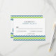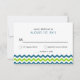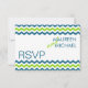 Cartões modernos de resposta de casamento. Placas RSVP de stripes de dois lados. Tonalidades náuticas de azul lacrimogêneo e verde limão em branco. O padrão Zig-zag reproduz-se com uma tipografia sans-serif minimalista ousada. Personalize o texto, digitação, cor, estilo, cor de fundo ou mova as faixas de ziguezague dos dentes-de-serra para criar mais espaço, se necessário. Pode ser personalizado como está, ou mover coisas para criar lindos kits de convite para casamento do-você-mesmo com nossos convites de encontro.