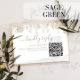 Este design apresenta casamentos, cartão rsvp, com um estilo simples elegante, um código QR digitalizável, com roteiro de caligrafia, resposta simples, com site e detalhes online, com tipografia quic, e sensual verde, verde-verde
