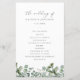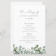 Preencha sua papelaria de casamento 'dia de' com um belo programa de cerimônias, com aquarela eucalipto e tipografia de cinzas moles. Personalize o lado inverso para listar os membros da sua festa de casamento.