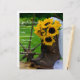 Personalize o encantador Menu de Casamento Ocidental do País Rustic Sunflower e Cowboy Boots, com os detalhes da refeição que você servirá no seu chá de panela informal, mas elegante, de festas de celeiro, janto de ensaio ou recepção de casamentos, adicionando a salada ou o primeiro, o primeiro, o segundo e a sobremesa ou o terceiro curso. Este personalizado menu de casamento ocidental do rancho apresenta uma fotografia floral acinzentada de um par de botas de cowboy marrom cheias de um buquê de flores de girassol amarelas e um véu branco de brasa em madeira de celeiro com uma roda de vagão e um fundo natural verde desfocado.