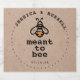 Rótulos de vinho espumante para casamento com tipografia clássica no design "Meant to Bee" em várias cores temáticas de casamento. Arte linear de uma abelha com coração amarelo. Personalize com os nomes dos noivos e data do casamento.