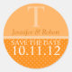 Autocolantes de casamentos com monograma laranja personalizado com nomes e data perfeita para convites para Casamentos outono.
