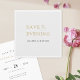 Este simples casamento chic salve a modelo da carta lisa da noite... apresenta uma design elegante, minimalista e moderna. A frente apresenta seus primeiros nomes e uma mensagem 'SAVE the EVENING' em um tom elegante de ouro chamado California Dourado e transmitido com uma combinação impressionante de duas fontes distintas, com 'the' em um guião luminoso e fluente entre o resto da mensagem, que é, em cima, com uma aparência formal ousada e nítida. Este elemento design está incluído em ambos os lados da placa e não pode ser alterado, embora você possa optar por excluí-lo na parte traseira para uma aparência ainda mais simples. E no verso você pode, claro, além de substituir nossas informações de exemplo por suas próprias, excluir campos de texto que você não precisa, ou mudar o texto, bem como mudar a fonte, o tamanho e a cor. No verso, escolhemos o mesmo tom de ouro para os seus nomes que usamos para o texto 'SALVAR a NOITE' na frente. Ao editar o texto para mostrar seus próprios nomes, você pode preferir mudar essa cor para o mesmo preto do outro texto ou outro tom. A cor de fundo padrão no verso é definida como transparente para permitir que a cor do papel sirva simplesmente como o tom base. Na frente do cartão que escolhemos uma cor de fundo chamada Fumaça Branca, é uma cinza muito clara que é principalmente branca. Também incluímos uma simples borda ao redor que é transparente, de modo que a cor do papel servirá e a cor da borda. Você pode mudar facilmente o fundo em um ou em ambos os lados, escolhendo uma das cores básicas nas ferramentas de edição, inserindo outro número de cor no lugar do nosso, se você tiver um tom específico em sua pesquisa, ou olhando para a ferramenta do espectro de cores e escolhendo algo à vista. A cor padrão para seus nomes na frente é preto e o texto na parte de trás é uma mistura de ouro, preto e um preto ligeiramente suavizado. Personalize este casamento elegante e minimalista, salve o modelo de cartão plano da noite com as ferramentas intuitivas de edição do zazzle e a sua inspiração e torne-o exclusivamente seu!