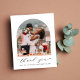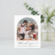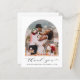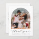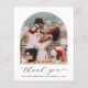 Cartão de agradecimento de casamento econômico para recém-casados com sua foto em uma moldura moderna em arco, "obrigado" em uma fonte elegante e o nome de Sr. & Sra. e data do casamento em tipografia simples. No verso, você pode personalizar uma mensagem de agradecimento e adicionar seus primeiros nomes como assinatura.