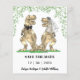 Delicie seus convidados com este engraçado convite de casamento temático de dinossauro, noiva e noivo T Rex com folhagem da floresta salvar a data. Fácil de personalizar com os nomes da noiva e do noivo e a data do casamento. Ilustrações divertidas da noiva e do noivo T Rex em aquarela com tipografia moderna. Arte original única da artista Catherine Sweetman