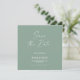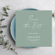Anúncio de casamento tipografia verde sage script elegante moderno salvar a data.