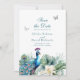 Capturar a essência da elegância tropical com o nosso "Casamento Tropical Teal Tropical Salve o Cartão da Data". Esta carta impressionante apresenta uma mistura cativante de penas de pavão teal e de folhagem tropical exuberante, evocando uma sensação de beleza exótica e sofisticação. Personalize seus Cartões salve a data com seus detalhes de casamento para garantir que seus convidados marquem seus calendários para o dia especial. Ponha o tom para a sua celebração tropical com o nosso "Casamento Tropical Teal Tropical Salve o Cartão de Data" e deixe o entusiasmo começar!