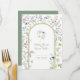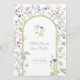 Bonito cardápio botânico de cor d'água, em branco, com bonito monograma de flores e de girassol de salsa entrelaçado e uma seleção de esboços de flores silvestres em volta de um arco verde na frente, verde sábio no verso, com sua escolha de cardápio de quatro pratos. Flores são todas pintadas manualmente de aquarelas. Convite floral delicado com texto de script em branco com tons de verde, azul, roxo, mauve, pêssego e amarelos. Personalize com suas próprias iniciais, nomes e detalhes do menu. Outros itens correspondentes estão disponíveis ou podem ser criados por solicitação. Pinturas de flor silvestre com aquarela original e design por Sarah Trett para www.mylittleedenweddings.com