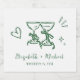 Etiquetas de vinho espumante para casamento romântico com ilustrações verdes caprichosas desenhadas à mão de um coração, estrelas e taças de vinho, e os nomes dos noivos apresentados em um script verde divertido.
