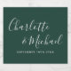 A design de casamento verde esmeralda de assinatura elegante personalizada com nomes de estilo de assinatura e sua data de casamento especial. Projetado por Thisnotme©