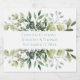 Verde impermeável com eucalipto. Tipografia personalizada com "Parabéns"! Seguidos de nomes e data de ocasião especial. Personalize isso com seus nomes e a data. Absolutamente lindo. Chapas de papel, guardanapos e outros itens disponíveis para completar seu tema. Perfeito para primavera e verão.