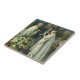 Ilustração Vintage, amor e cerimônia de casamento romântica, com uma imagem de um casal se casando em uma bela sinagoga com vitrines coloridas, flores e uma menorah de sete galhos. A noiva está vestindo um longo vestido branco e o noivo é bonito em seu smoking.