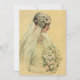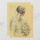 Ilustração de safra design de retrato vitoriano de casamento com a noiva em perfil. A bela noiva está em seu vestido de noiva com véu segurando um buquê de flores brancas.