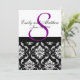 Convite para Casamento tema damasco com Monograma Roxo. Layout design de Elke Clarke ©2009. Gráficos licenciados para use.com e WhiteWhimsicalWeddings.blogspot.com. Personalize com seus nomes de monogramas e cores de casamento. Adicione todas as suas informações de casamento na parte de trás do cartão usando os prompts de menu fáceis de usar do Zazzle.