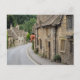 Cartão postal das antigas cascas coloridas de mel em pedra de Cotswold, com ardósias no telhado, na pequena, tenra aldeia de conto de fadas de Castle Combe, na região de Cotswolds, Inglaterra, Reino Unido.
