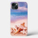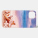 Linda paisagem romântica com conchas doces ligeiramente rosa na praia. A onda lava suavemente a costa, nuvens cor-de-rosa estão flutuando no céu azul. A atmosfera do paraíso e da serenidade.