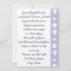 Traga um toque de diversão de verão para o seu evento com este convite de casamento que apresenta uma fronteira de lavanda no lado direito, decorada com um padrão de conchas, estrelas e dólares de areia. O lado esquerdo da placa tem muito espaço para todos os detalhes do evento especial com algum texto de exemplo no lugar que pode ser personalizado para ajustado das suas necessidades. Um dólar de areia lavanda flanqueado por uma concha de água-viva e peixe-estrela termina as coisas nas costas para criar uma nota final fofa. Certifique-se de verificar os outros produtos no Seashells de Verão em conjunto de Lavandas para criar uma pesquisa verdadeiramente coordenada para o seu evento.