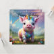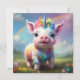 No coração de um campo vibrante com flores silvestres, um unicórnio bebê colorido franze alegremente sob o arco de um arco-íris radiante que se estende pelo céu. O corpo suave e gordinho do leitão é enfeitado em pintas e púrpuras pastéis, com manchas cintilantes de ouro e azul que captam a luz solar. Por cima de sua pequena cabeça está uma buzina espiralada, delicada e brilhando com uma luz azul iridescente, como se ela segurasse a própria essência da magia.
