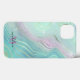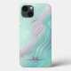 Este incrível desenho digital de um mármore azul aqua iridescente faz um presente inspirador para ela. Personalize-o com a primeira letra do seu nome familiar e o seu nome num estilo elegante escrito à mão. Clique para personalizar ainda mais para alterar o tamanho e a posição da imagem de fundo, fazer-a especial e exclusiva.