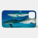 Um trio de tubarões magníficos nada graciosa perto, capturado em seu caso do iPad.