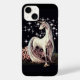 Contra um céu estrelado, o lendário, unicórnio mitológico, a partir de um bestiário medieval ou de um conto de fadas.