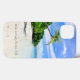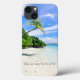 caso extremo resistente do iPhone para 6 e 6s. Imagem tropical com árvores e palmeira, mar, areia/praia. O texto lê "relaxa e aprecia o melhor da vida".