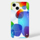 O gabinete iPhone 14 é mostrado em um impressão de abstrato colorido. Personalizar ou comprar como está.