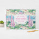 Este design de livro de hóspedes apresenta uma cena de praia de pré-disquete com um castelo de areia rosa. Você pode personalizar com seu nome de família, seu nome de Air BNB ou sua localização. Este livro de hóspedes é perfeito para uma casa de férias na praia ou aluguel.
