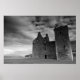 Foto preta e branca do Castelo de Lochranza.