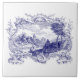 Esta paisagem do tipo rococó barroco francês, azul e branco, com pontes e figuras na cartouche rocaille, foi derivada de uma ilustração antiga ca. 1745. Você pode personalizar a cor de fundo.