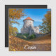 Paisagem de outono de fortaleza com torres de pedra cercadas por árvores amarelas e laranja. Castelo Cesis na Letónia