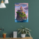 Um grande castelo numa rocha no oceano com nuvem no céu. Esta é uma arte gerada por IA.