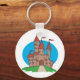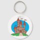 Um castelo com bandeiras em cima de uma colina. Esta design parece realmente eficaz nesta Chaveiro