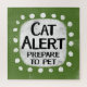 Um design de animais tipográficos irreverente e fofo que diz "Cat Alert, Prepare to Pet". Ele apresenta texto preto e vermelho em um retângulo branco com pontos brancos engraçados e brincalhões ao redor dele, tudo em um fundo de cinza.