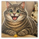 A ceramic tile featuring a caricature of a cat.