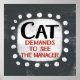 Um design de animais tipográficos fofo e engraçado que diz "Cat Exige Ver O Gerente". Ele apresenta texto preto e vermelho em um retângulo branco com pontos brancos engraçados e brincalhões ao redor dele, tudo em um fundo de cinza.