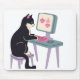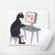 A Tuxedo cat typing on a computer keyboard mouse pad.
