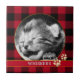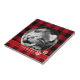 Foto personalizada do padrão de xadrez vermelho e preto de búfalo, Azulejo cerâmico com decoração festiva de gatinhos giros para amantes de gatos.