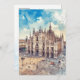 Este postal apresenta um retrato aquoso da Catedral de Milão, na Itália.