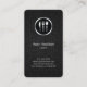 Este design de cartão de visita de caterária forte e elegante apresenta uma sutil textura preta escura escura ao fundo. A parte superior da placa tem um ícone cromo de tamanho médio de uma talheres. Seu nome e título aparecem no meio, em letras brilhantes e fáceis de ler, enquanto seus detalhes de contato aparecem na parte inferior da placa em letras menores, mas limpas e legíveis. Perfeito para comidas, restaurantes, refeições, restauração, temas de serviços, mas pode ser usado para quase todas as empresas ou indústrias.