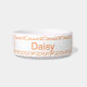 Caudas de camarão cozidas em aquarela em um padrão ditsy em um fundo branco. Personalize esta tigela usando o nome do seu animal de estimação!