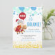 Cavaleiro doce com convite de aniversário de balão vermelho. Com bolhas azuis e confete de ouro.