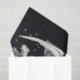 Ilustração de cavaleiro e dragão em imagem de safena a preto e branco. Um cavaleiro com asas, segurando um escudo e uma espada bate num dragão.