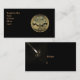 Cartão de visita bonito com o medalhão que descreve Camelot com a espada de Excalibur no pelotão da frente e no Merlin o feiticeiro no céu do fundo. Para trás do cartão tem uma espada.