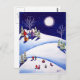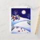 Crianças trenós cavalgando debaixo de uma lua de cheio.