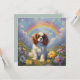Um cartão de compaixão personalizado do Rei Cavaleiro Charles com uma bela pintura de um Rei Cavaleiro Charles numa colina celestial com um belo arco-íris. Simbolizando o cão Cavalier King Charles passou a ponte do arco-íris para o paraíso doggy. Você pode personalizá-lo com seu próprio nome Cavalier King Charles dog ou qualquer outro texto no verso do cartão. Faz um memorial especial ou um presente de simpatia para qualquer amante do cão Cavalier King Charles se o seu querido cão tiver passado.