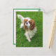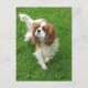 Brilhar o dia de alguém com um filhote do Rei Charles! Este cartão-postal canino divertido mostra uma imagem de um cão-cachorrinho Cavalier King Charles Spaniel andando na grama verde.