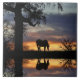 Uma azulejo de arte bonito de um cavalo no final do dia refletida na água. É como se ele estivesse se vendo na água. O sudoeste das cores nas nuvens. Uma bonito paisagem da mãe natureza!