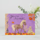~ Este convite de aniversário apresenta um bonito cavalo trotando pelas folhas do outono em um belo fundo roxo. Alguns gráficos por artwork©delightful-doodles.com